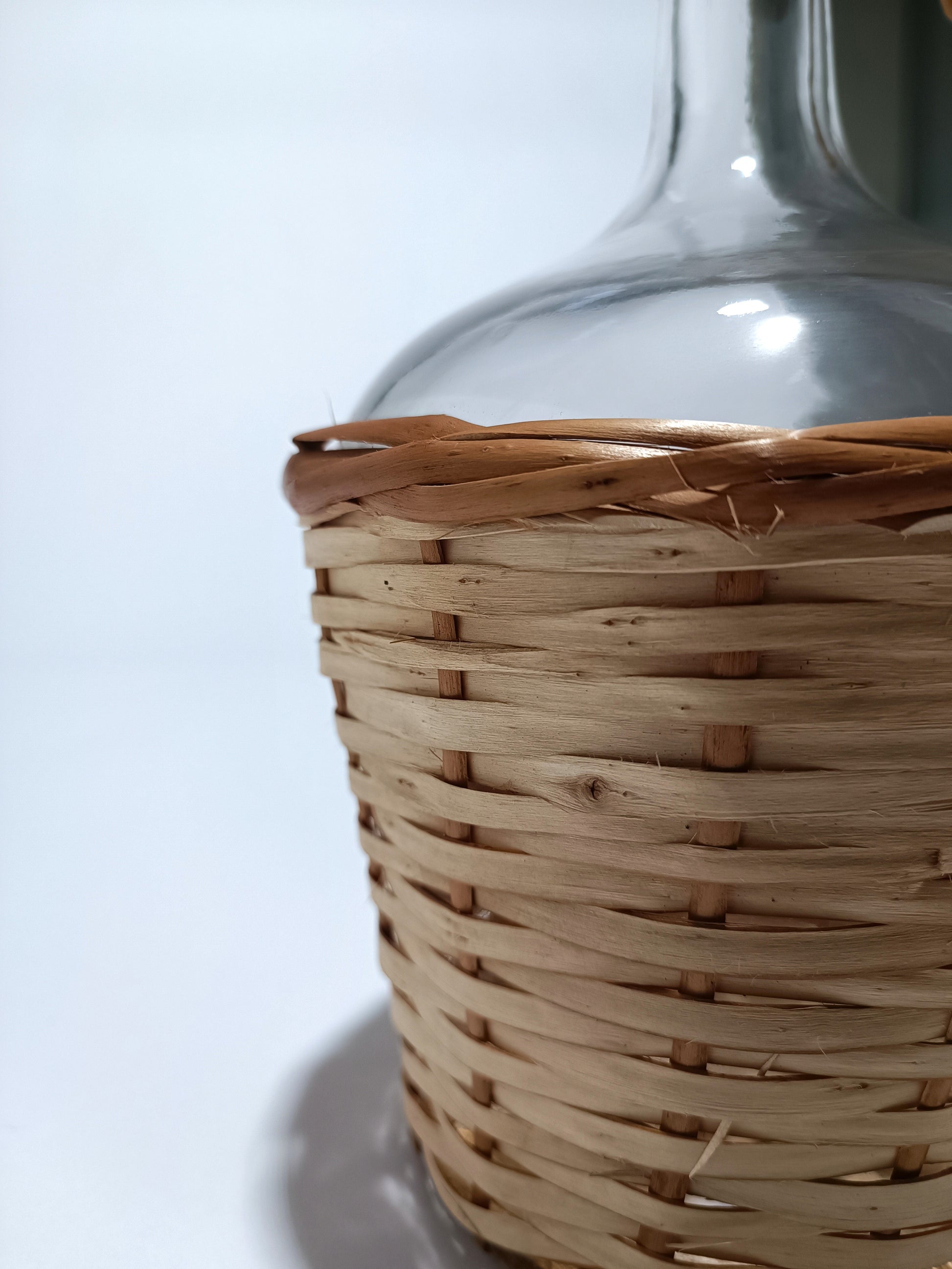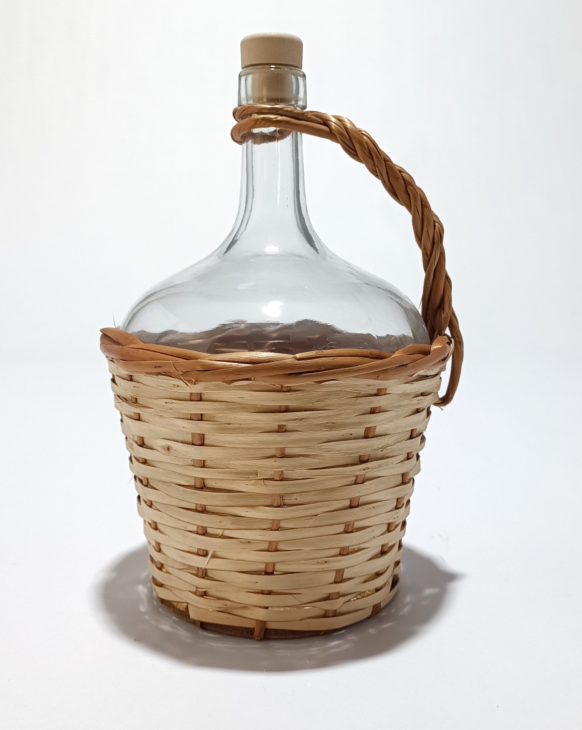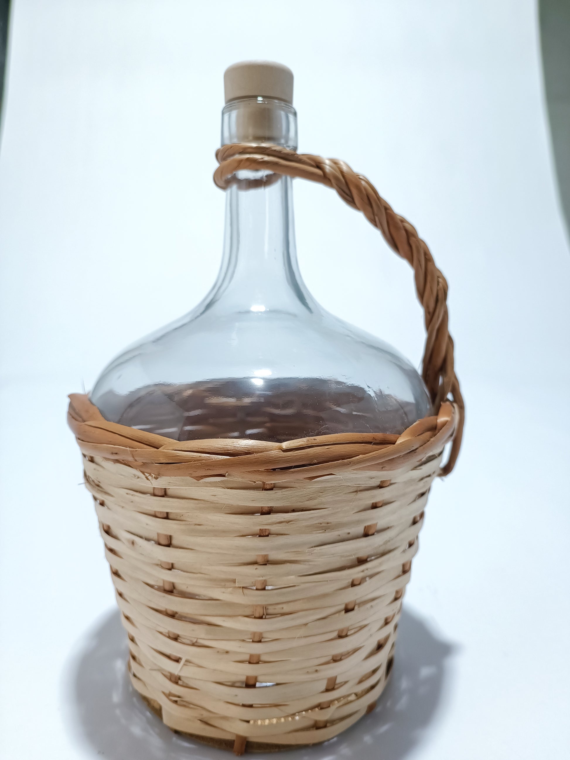 Garrafa de vidro de 2 litros com alça e forrado de vime